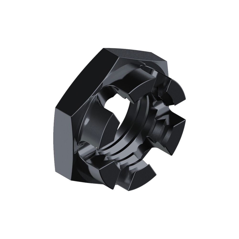 Korunové matice DIN 937, nízké, nepotažená ocel
