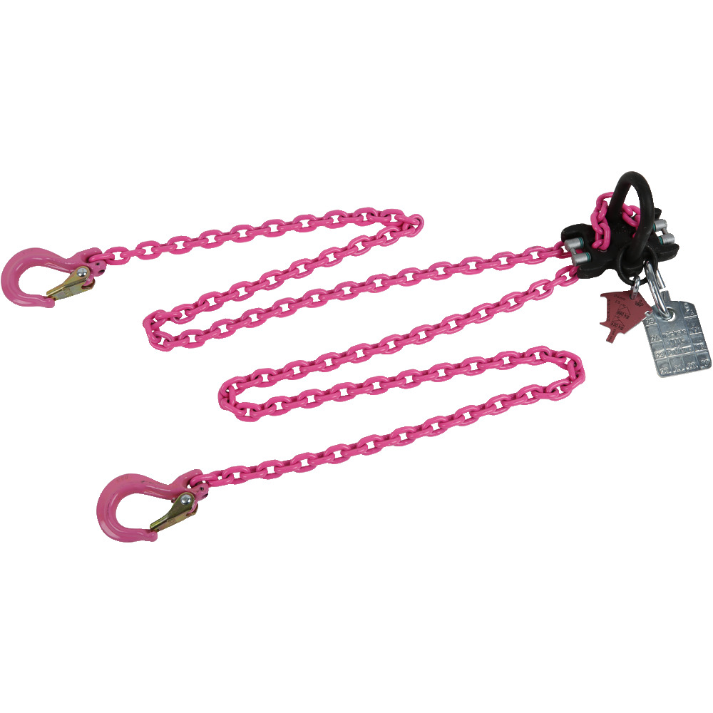 • zvedák z ušlechtilé oceli, s patentovaným mechanizmem pro navzájem nezávislé nastavování dvou řetězových větví s bezpečnostními háky